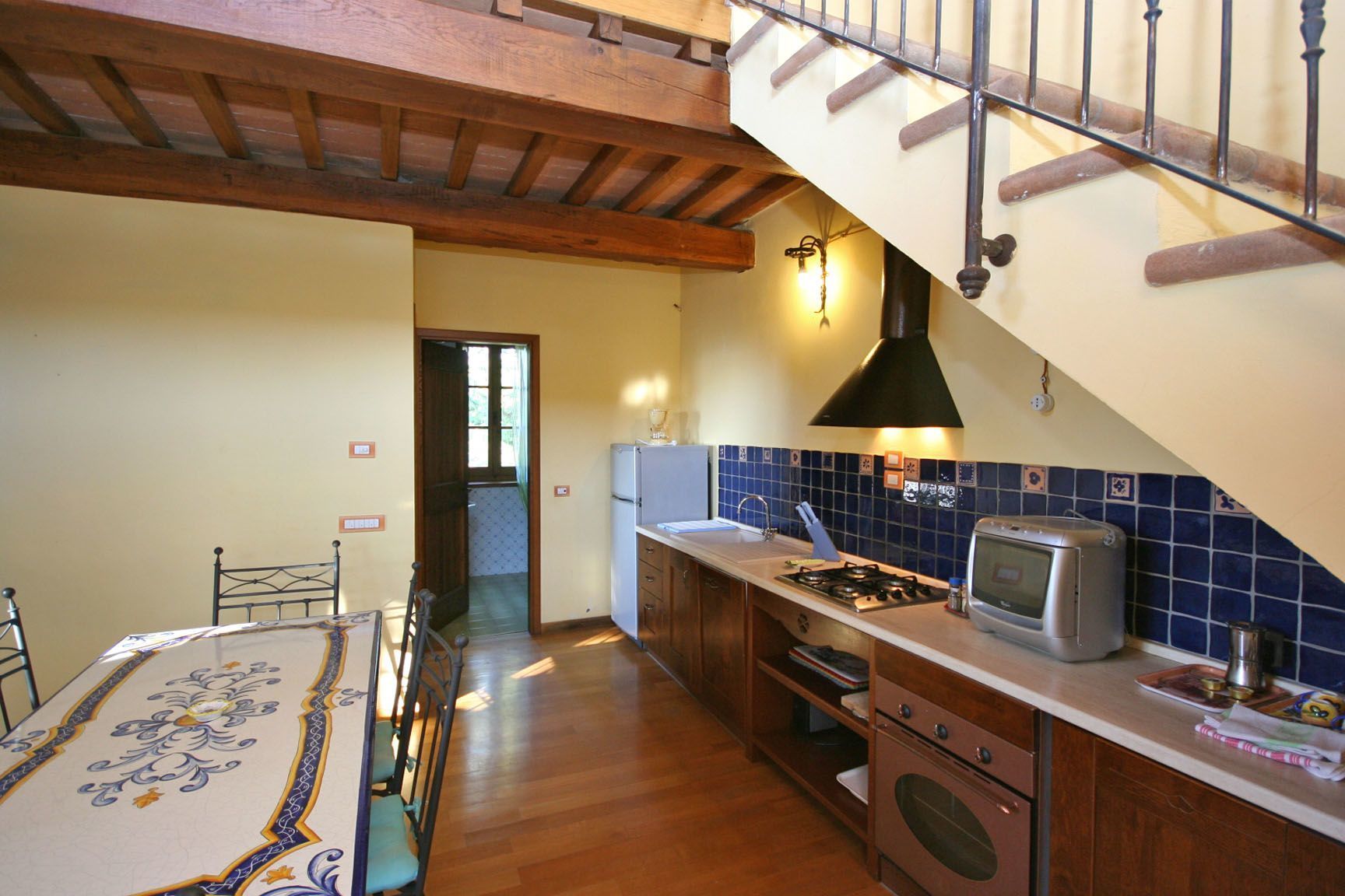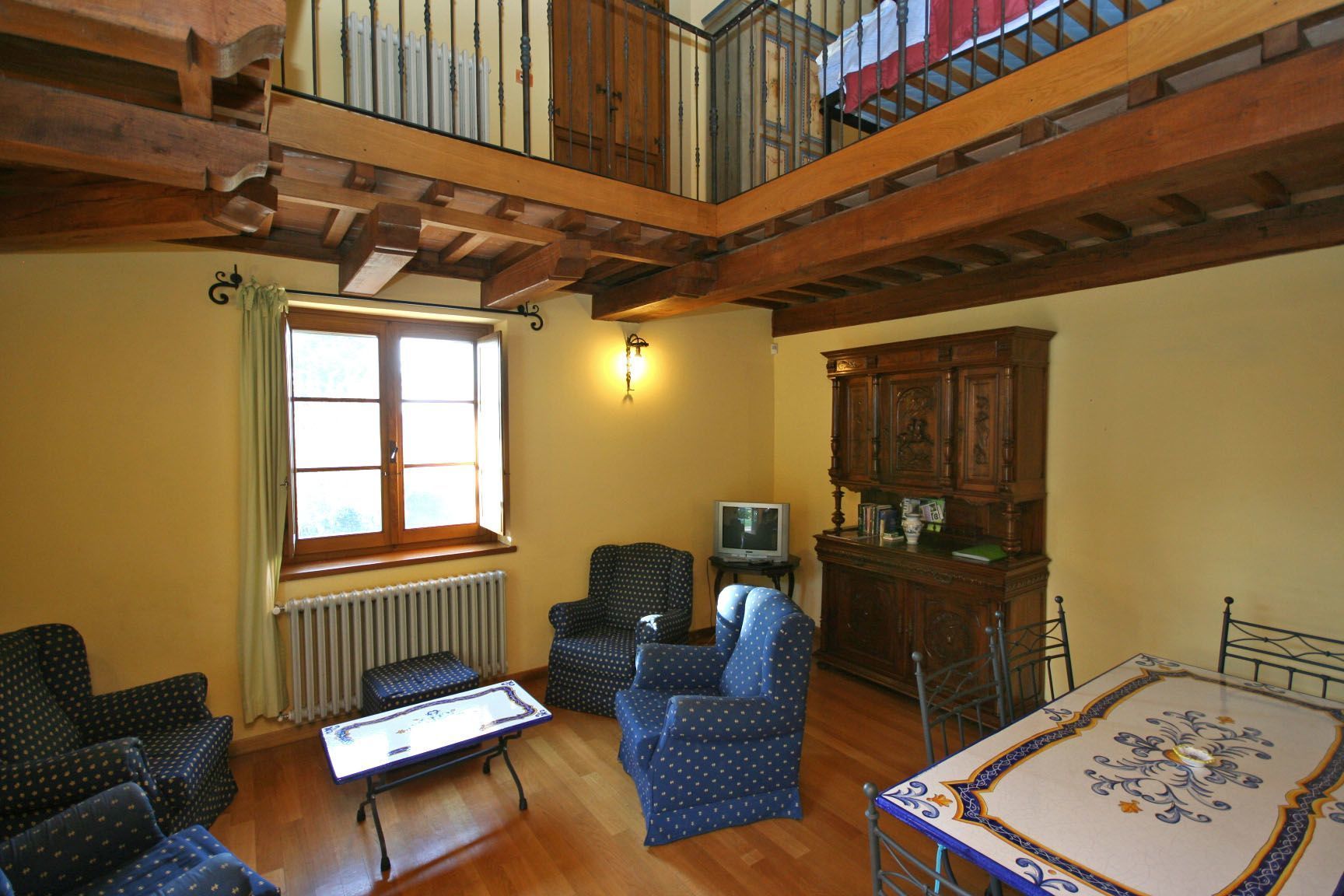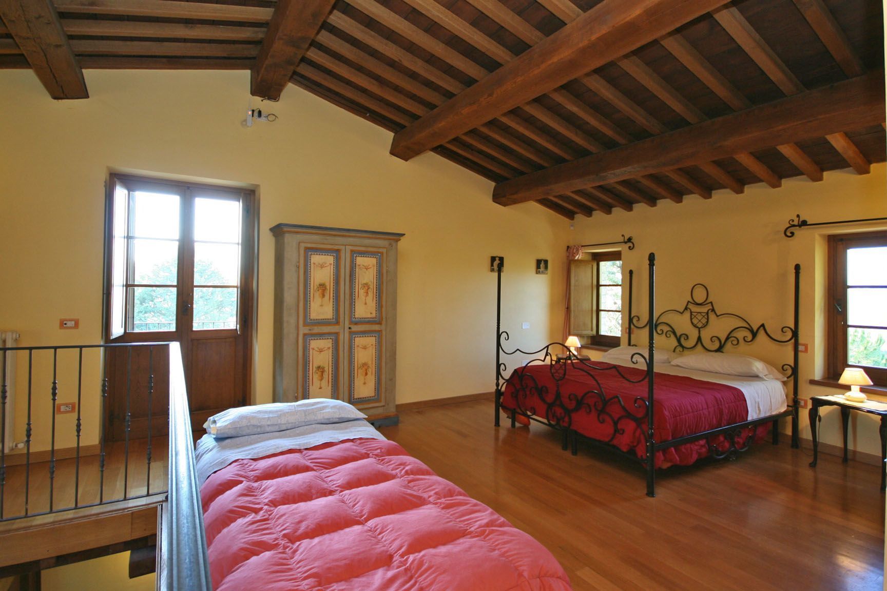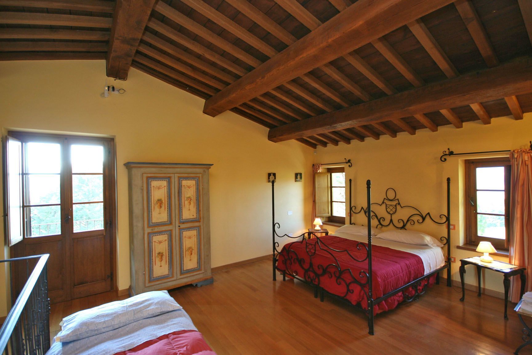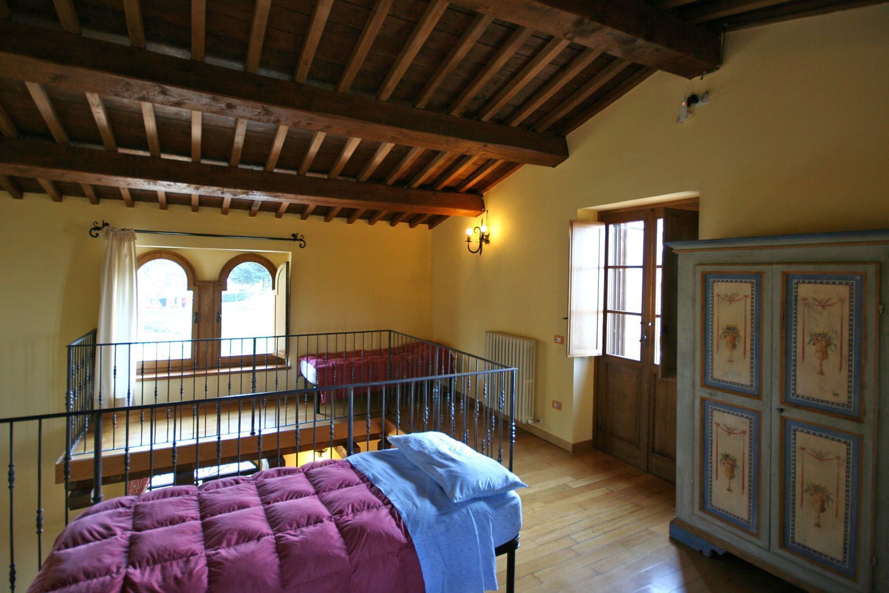 1st floor: large open gallery leaning over the living area with double bed and 2 single beds, bathroom with Jacuzzi bathtub.