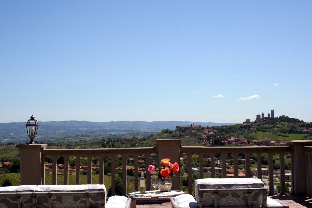 Solarium terrace with beautiful view of San Gimignano equipped with deck chairs where you can take a break while admiring the Tuscan landscape