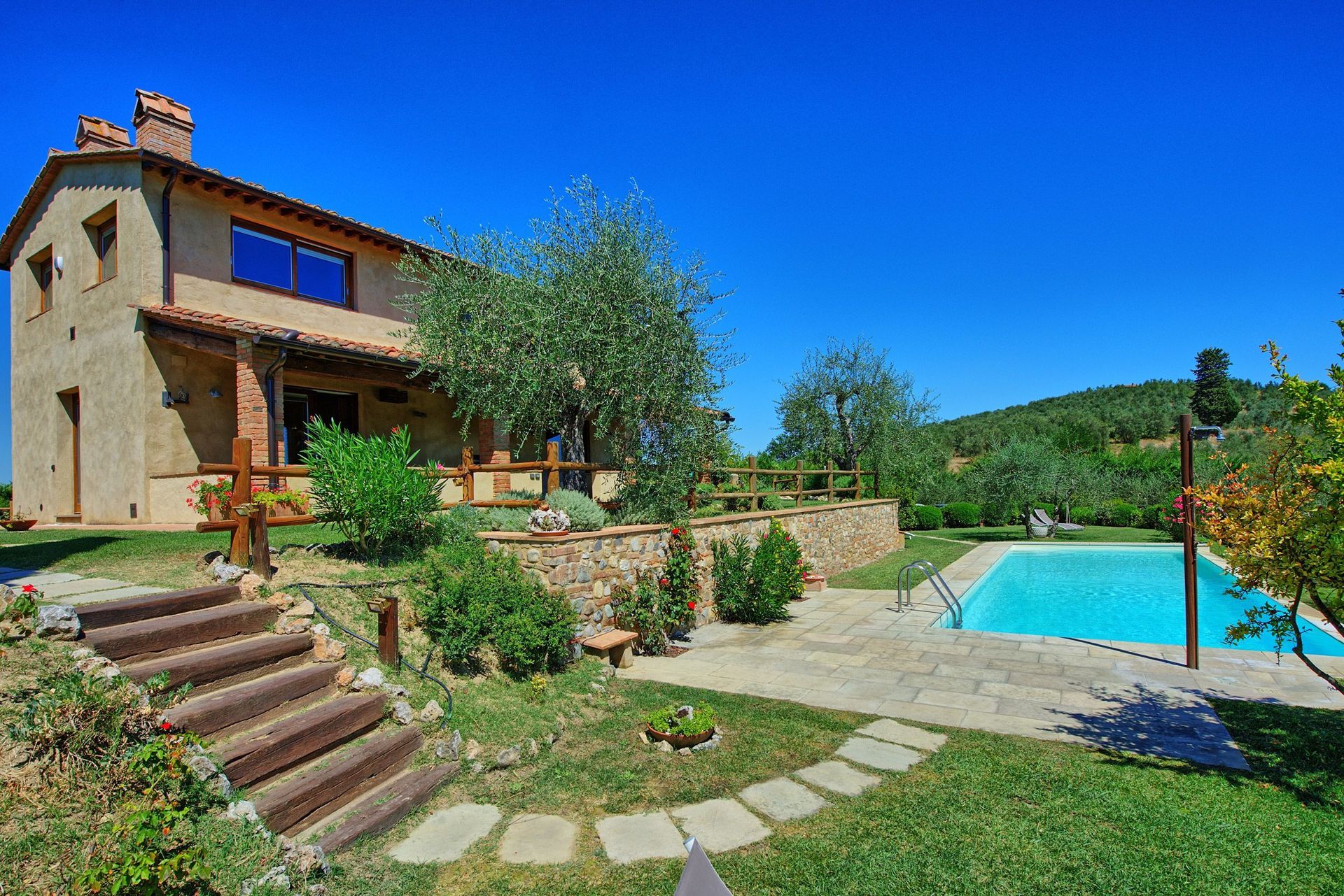The location is very panoramic and offers extensive views over the surrounding landscape and the lovely town of San Gimignano with its towers in the distance. Florence, San Gimignano and the charming hamlets of the Chianti area are in easy access.