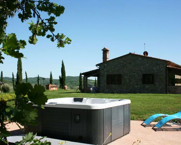 The Tuscan Maremma, territory of ancient tradition, still preserves its nature of harsh land, with strong contrasts and particularly fascinating colors. Its green and marvelous hills overlook the blue Tyrrheanian Sea and are marked by innumerable, typical villages such as Scarlino and its picturesque castle, from which you can admire the splendid view on Follonica Gulf and Elba Island. Le Pianacce is a lovely, stone villa, set on a sweet hill surrounded by silver olives and vineyards, making part of the owners farm. Less than 20 km far the sea and the small town of Follonica with its golden beaches and the numerous bathing establishments. The house, well-furnished and equipped (dishwasher, washing machine, satellite TV), is endowed with a panoramic garden with a private swimming pool (size 5 x 10 m - depth 1,40 m), and an external Jacuzzi (4 seats), deck-chairs, sun umbrellas and shower, a large porch equipped with table and chairs and barbecue to eat and relax outside. Le Pianacce will be ideal destination either for those who wish to enjoy the green Tuscan countryside or for those who would rather spend their days at the seaside, which can be reached in 15 minutes driving.
