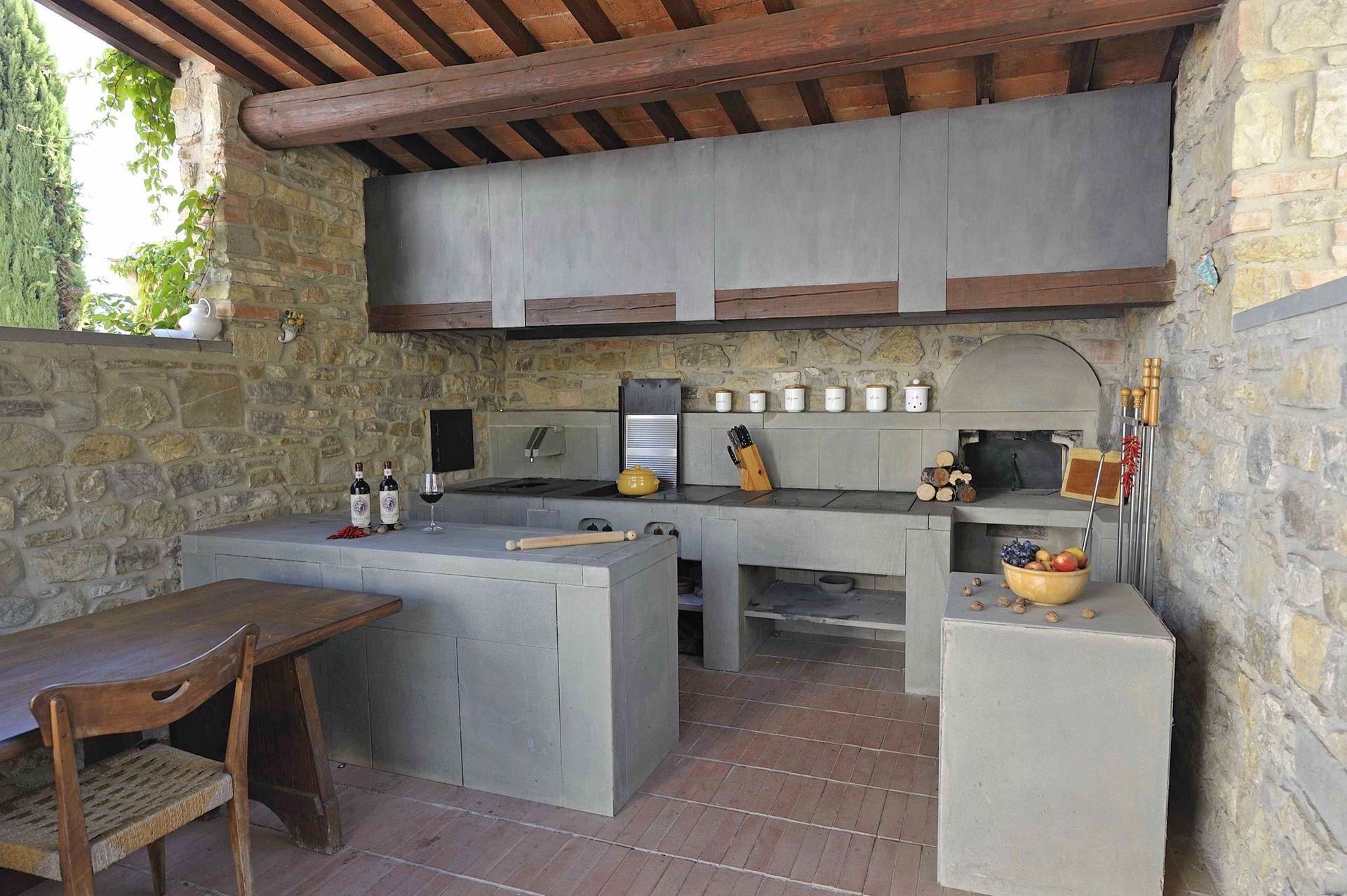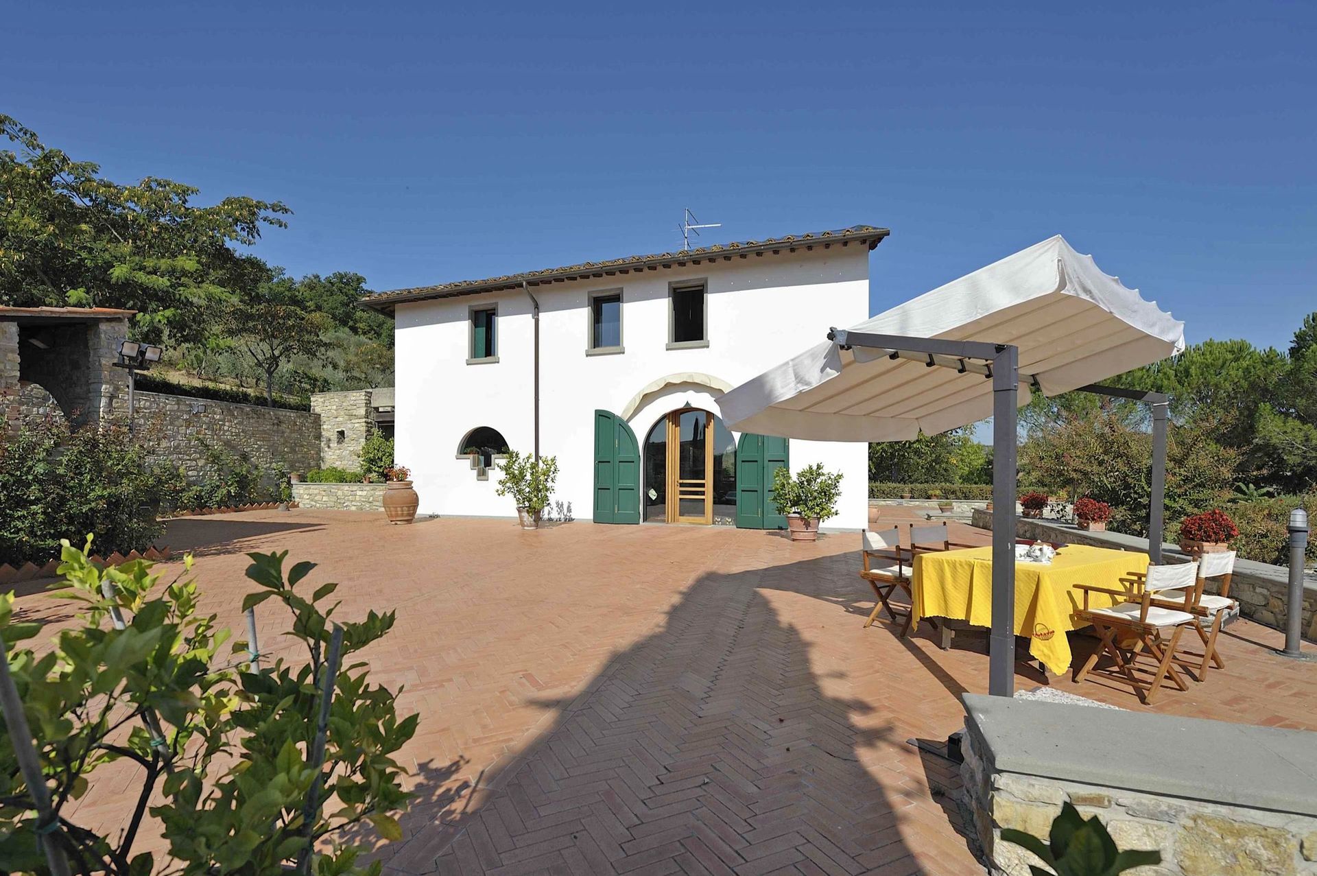 Ancient and welcoming restored farmhouse situated in panoramic location, only 7 km from Florence. This villa, surrounded by beautiful olive groves, vineyards, peach, cherry and apricot-trees, offer a large, well-kept terraced garden with private pool, Jacuzzi tub and tennis court. Outside, guests can also enjoy use or a charming restored barn with kitchen, bread oven, barbecue and dining area ideal for al-fresco dining.