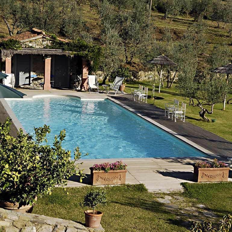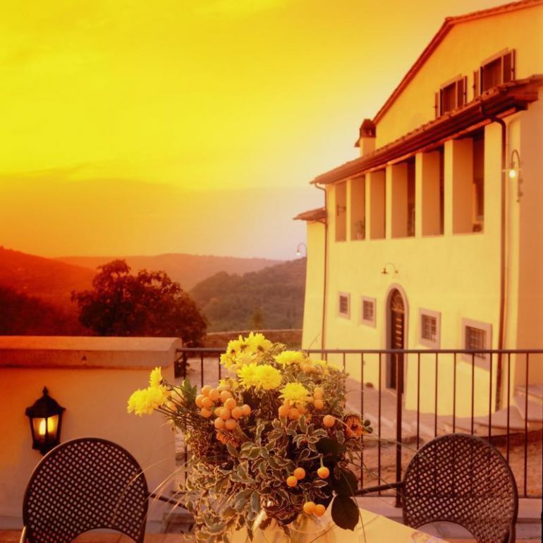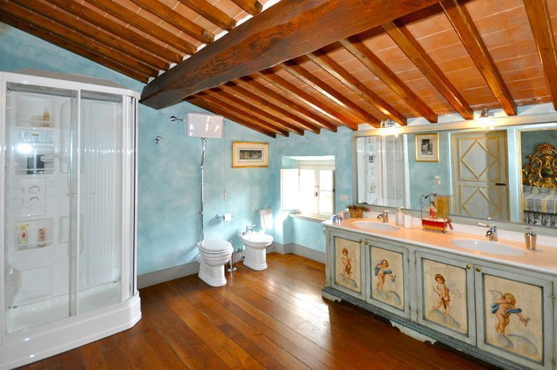 Beautiful 17th century villa converted into a comfortable country residence, just 5 km from Arezzo. The property is immersed in greenery and surrounded by woods, vineyards and olive groves. It is composed of a portion of the grand villa (the owners inhabit the other portion) and 4 suites in a guest house a short distance away, accomodating up to 24 guests comfortably. Outside there are furnished and private spaces, a large terrace and a beautiful private pool with sun deck.