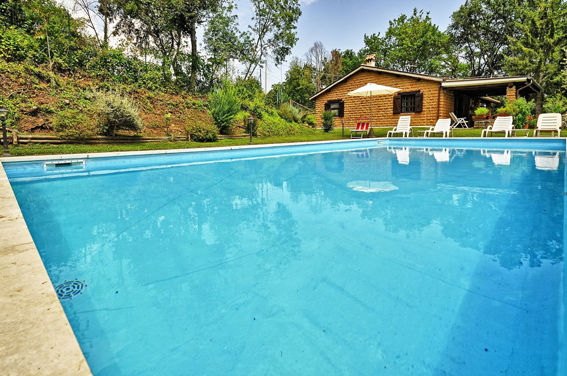 Welcoming country villa with private pool quietly situated, a short distance away from the beautiful town of Orvieto. This house offers a nice entirely fenced-in garden and a small (fenced) lake with fishing facilities. Outside, guests can also enjoy use of a nice private pool and of a furnished loggia at the house entrance. The villa offers nicely furnished interiors.
