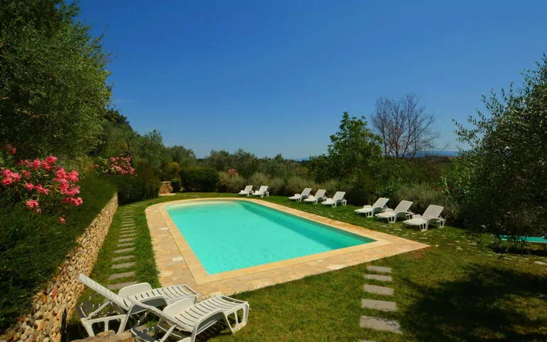 This villa offers a marvelous panoramic view of the countryside, providing a serene and picturesque setting for your vacation. Please note that if you plan to check-in after 9:00 PM, a late check-in fee of 100 Euro will be charged. With its spacious layout, modern amenities, and authentic charm, this villa promises a comfortable and memorable stay for up to 12 guests, with six bedrooms and five bathrooms available.
