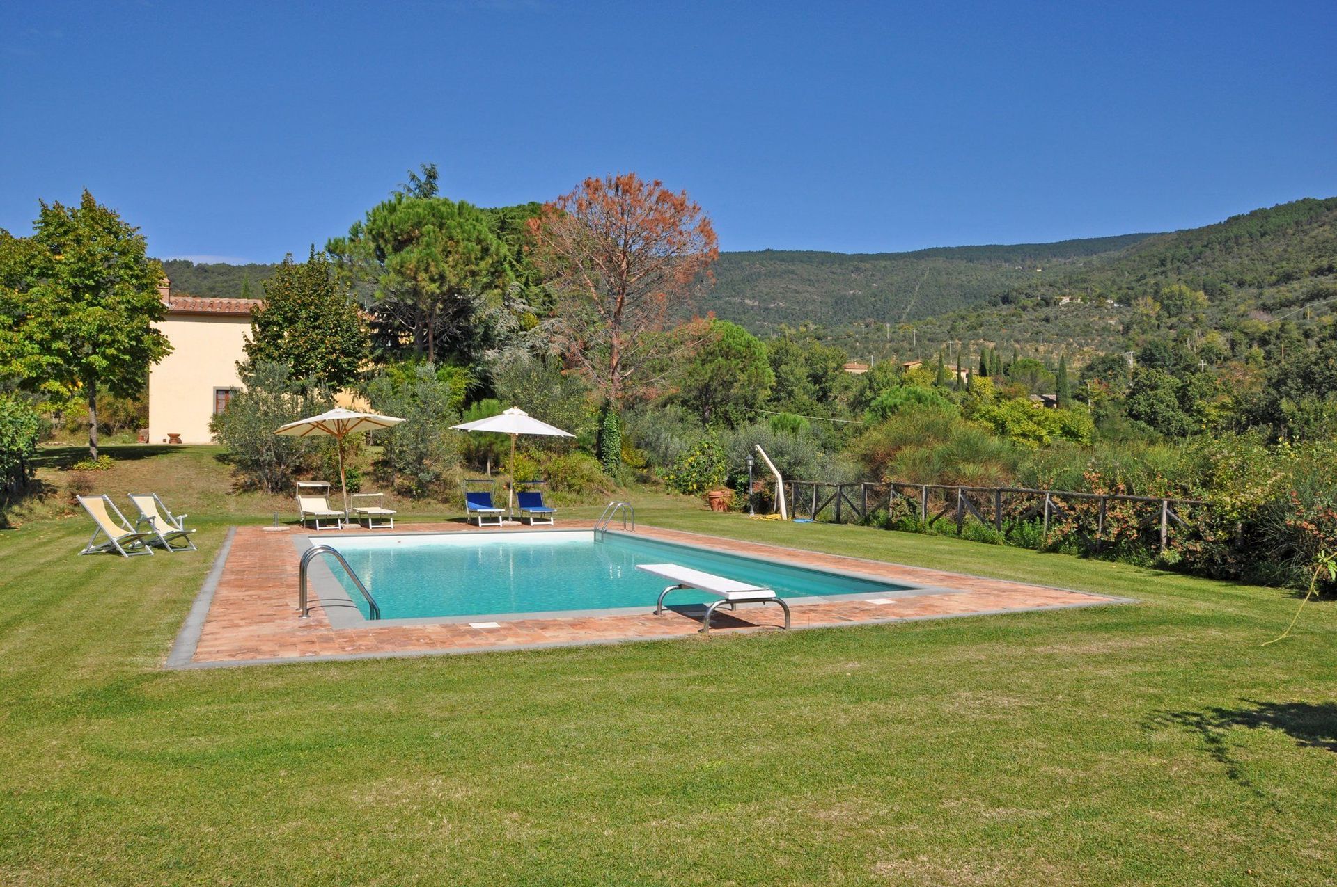 «Wunderschön gelegenes Ferienhaus. Absolut ruhig mit wunderschönem Panorama auf das mittelalterliche Cortona. Sehr nettem Vermieter, der persöhnlich vor Ort ist. Der sehr große Garten ist sehr gepflegt und wunderschön angelegt. Das Swimmingpool ist sehr sauber und ebenfalls bezaubernd. Das Haus hat sehr viel Atmosphäre und ist sehr gut ausgestattet. Uns hat es ausgezeichnet gefallen. Wir würden jeder Zeit wiederkommen»