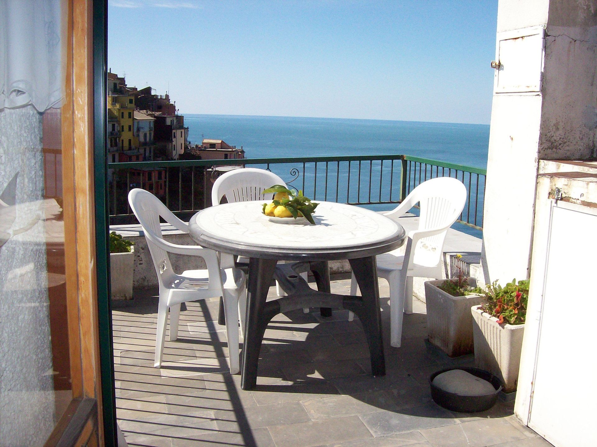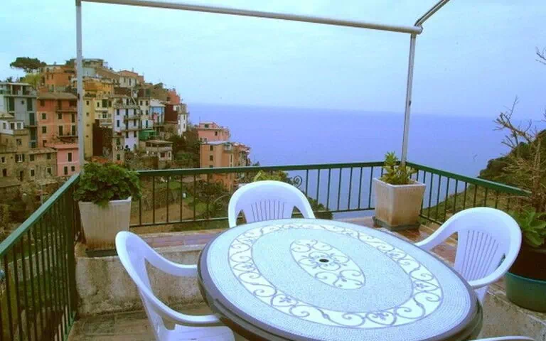 The holiday apartment in 5 Terre has 2 bedrooms each with double bed, one single bed room, a living room with TV, a kitchen with gas stove with 4 hobs and oven, fridge with freezing compartment, bathroom with shower and a marvellous terrace with breathtaking sea view.