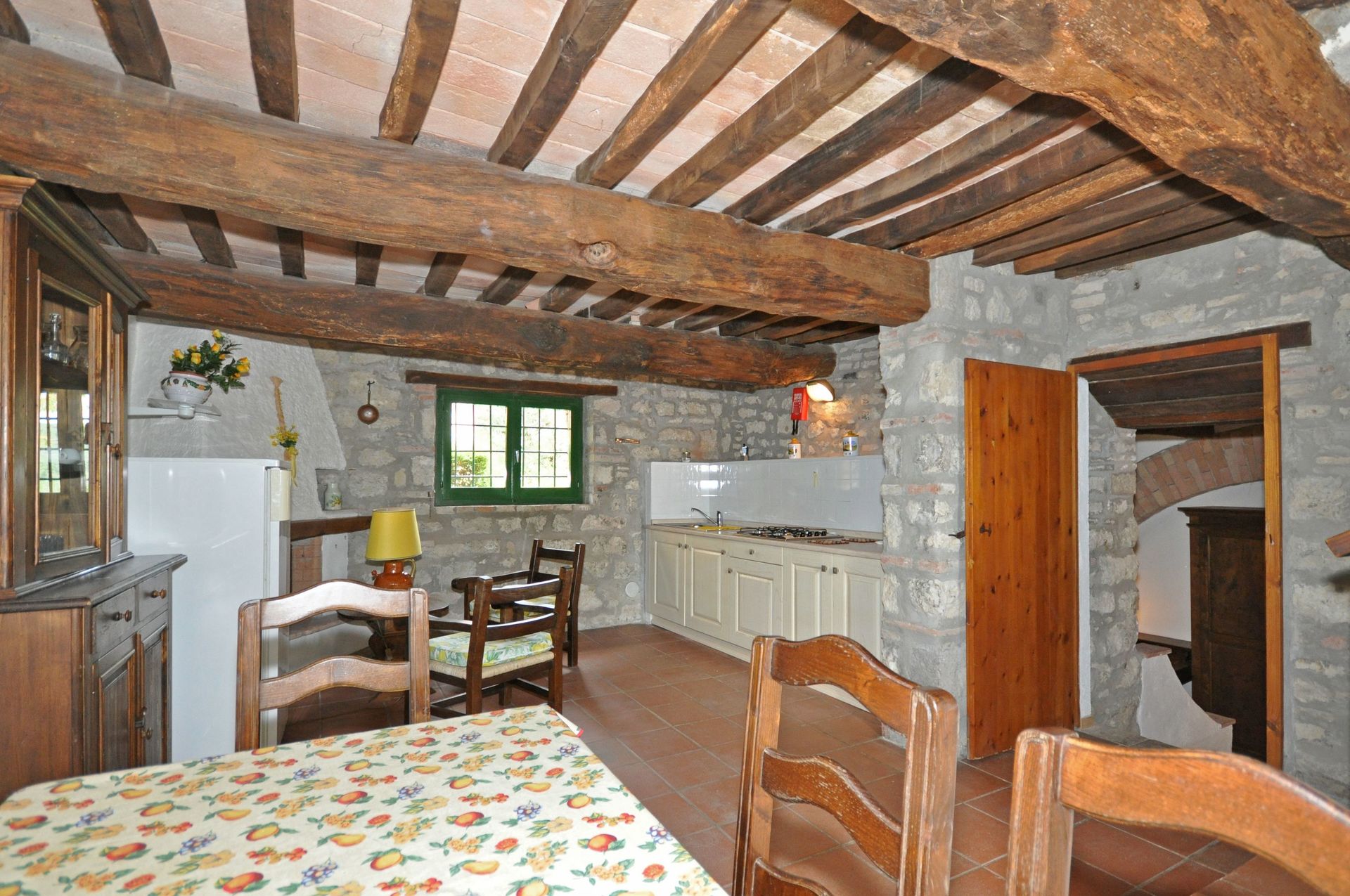 Ground floor: living-room with fireplace, dining area and kitchen corner (freezer, dishwasher).
