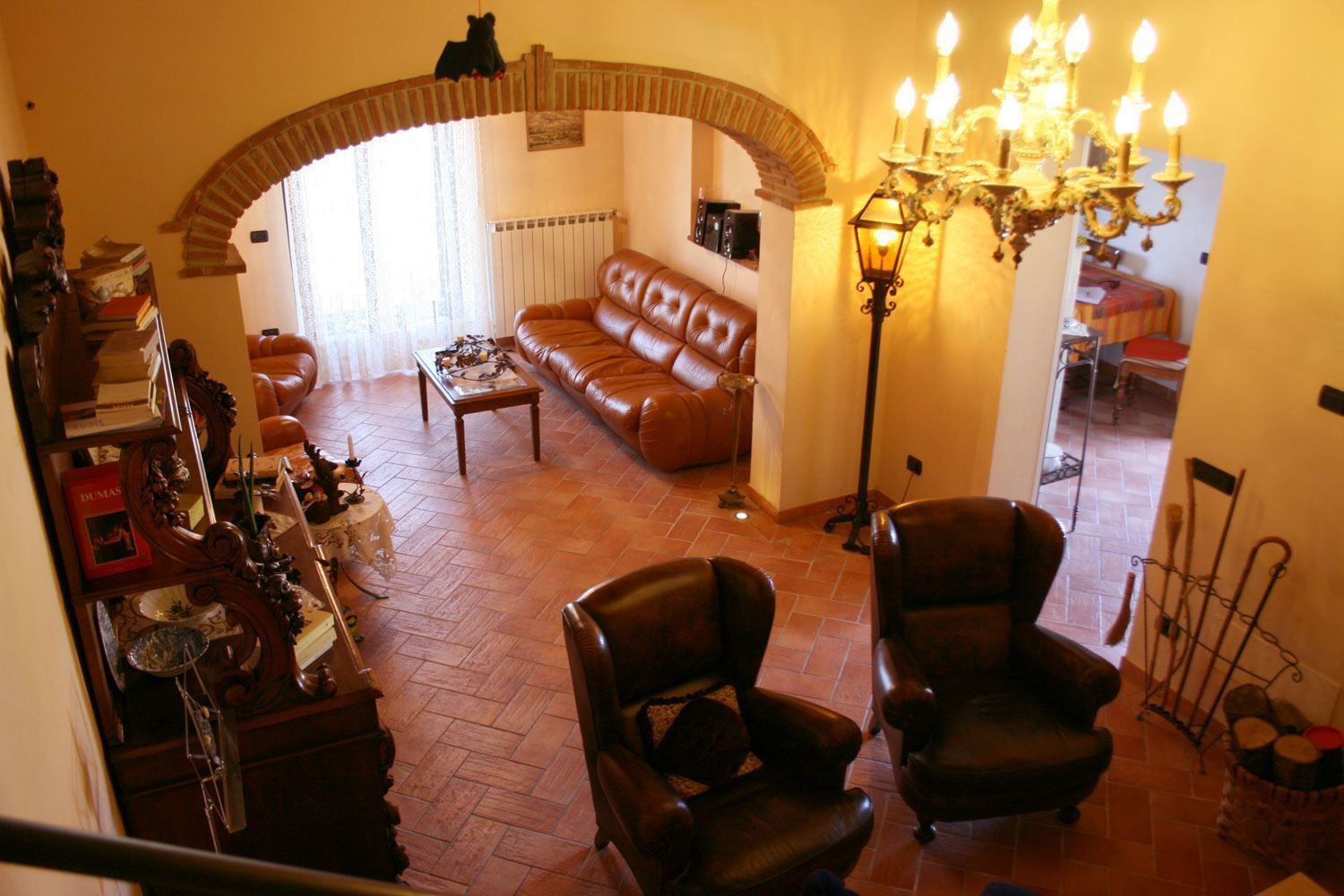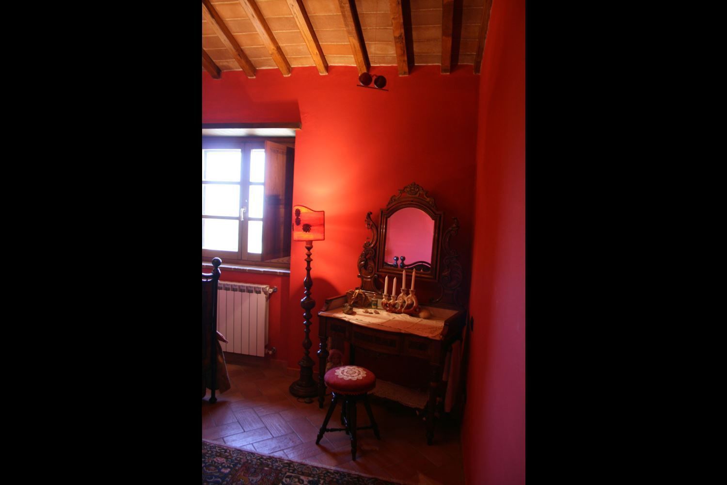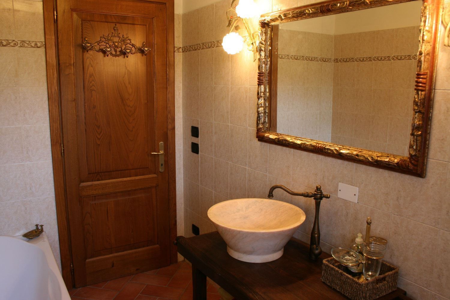 Picture this, if you will: a pretty villa in a small town with the lush greenery of trees and views over the vineyards and rolling hills of the Tuscan countryside all around, a front entrance opening into a little court with flowers and trees, climbing blooms and vines winding up the sunny yellow facade of the villa, green shuttered windows, a romantic balcony on the first floor above the entrance, and a terracotta roof to top it off. This is the dreamy first encounter that guests have when they reach Villa Toppani Del Sodo and this very much sets the appropriate tone for your vacation here.