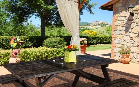Nestled in the heart of the Maremma countryside in Roccastrada, Italy, this charming independent country house offers a truly secluded and tranquil retreat for those seeking a peaceful escape. Set on a fenced property spanning 250 square metres, this detached holiday rental is surrounded by a well-maintained lawn adorned with flowers, creating a serene and welcoming atmosphere. The house is conveniently accessible by motor vehicle, with private parking available directly on site, ensuring a comfortable and stress-free arrival. Staying connected is effortless thanks to the available Wi-Fi internet access, whether you wish to keep in touch with family and friends or attend to remote work during your stay. Positioned just 1.5 km from the town of Roccastrada, this property combines the charm of rural living with easy access to everyday conveniences.