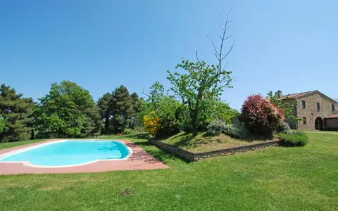 The Podere di Montemaggiore is situated in the province of Siena, about 1 km from the main farm buildings of Fattoria Marengo. The property is made up of a main building and two directly connected annexes. About 100 metres in front of the apartments, protected from view by a dry-stone wall, is the swimming-pool, from where one can enjoy the panorama of Siena and the interesting countryside known as the 'creste senesi'. The flats have been furnished in a rustic style. Free tennis court at 3 km, possibility to visit wine cellars for degustation. Agreements with restaurants, thermal baths, golf courts and mountain bike rentals. Welcome basket on request. Extra. Babysitting on request. Large working farm "Montemaggiore", surrounded by meadows, fields and vineyards. 16 km from the centre of Monte San Savino, 25 km from the centre of Siena, 40 km from the centre of Arezzo. For shared use: garden with lawn, swimming pool (14 x 7 m, depth 165 cm, 25.05.-30.09.). Barbecue. Heating to be paid on the spot (01.11.-15.04.). Linen change (suppl. charge extra). Towel change (suppl. charge extra). Pre-arrival grocery service. Motor access (800 m via unmade road). Parking on the premises. Supermarket 16 km, restaurant 5 km, bakery 16 km, thermal baths "Rapolano Terme" 15 km. Golf course (9 hole) 25 km. Nearby attractions: Arezzo 40 km, Montepulciano 55 km, Rapolano Terme 15 km, Siena 25 km. On request: airport transfer to the holiday accommodation. Local sale of farm products.