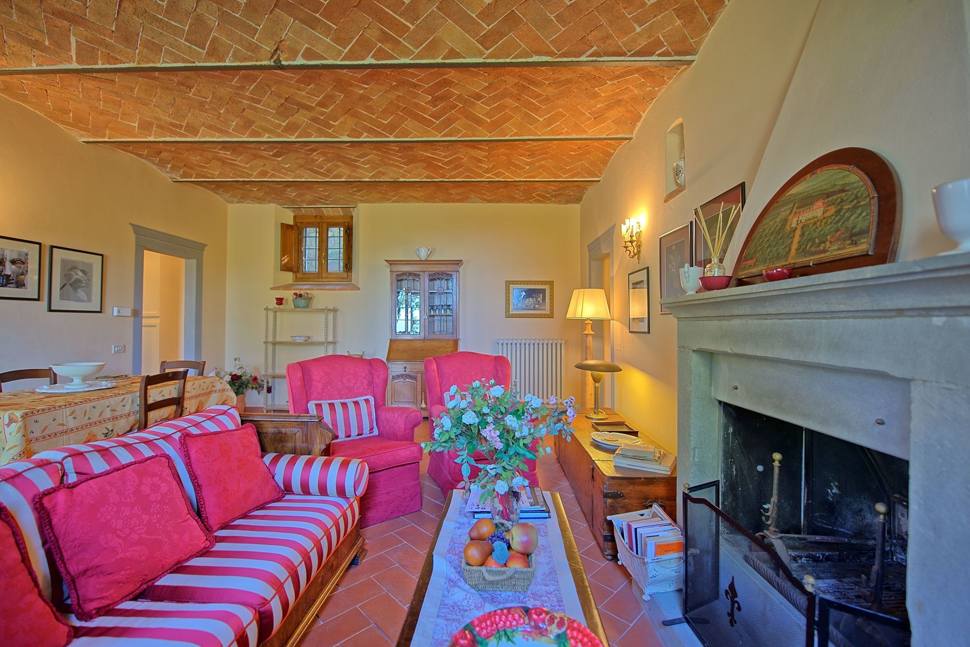 The adjoining farmhouse is spread over two floors; only the ground-floor apartment is rented out (the apartment on first floor with separate entrance is occasionally used by the owner).