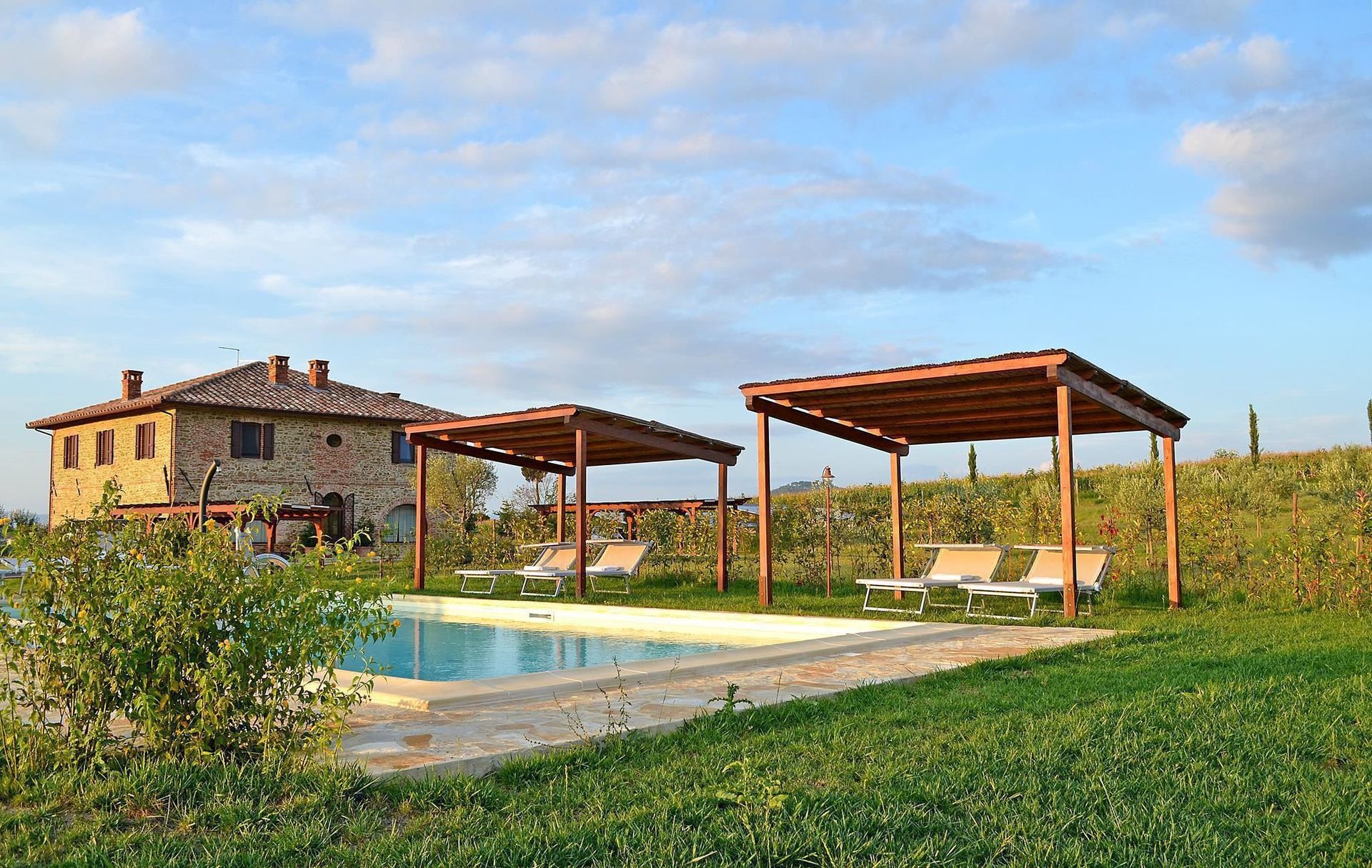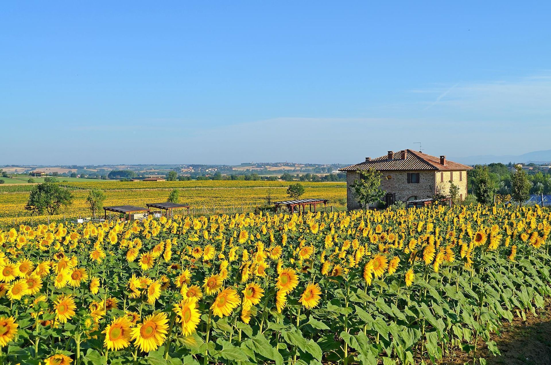 On the border between Umbria and Tuscany, nestled between Lake Trasimeno and the nature reserve of Lake Chiusi on one side and the Sienese territory of Montepulciano and Arezzo Cortona on the other, you will find yourself be immersed in a lush countryside where Villa Chiara is waiting for you to give you a holiday full of colors and scents exploring an area of rare beauty.