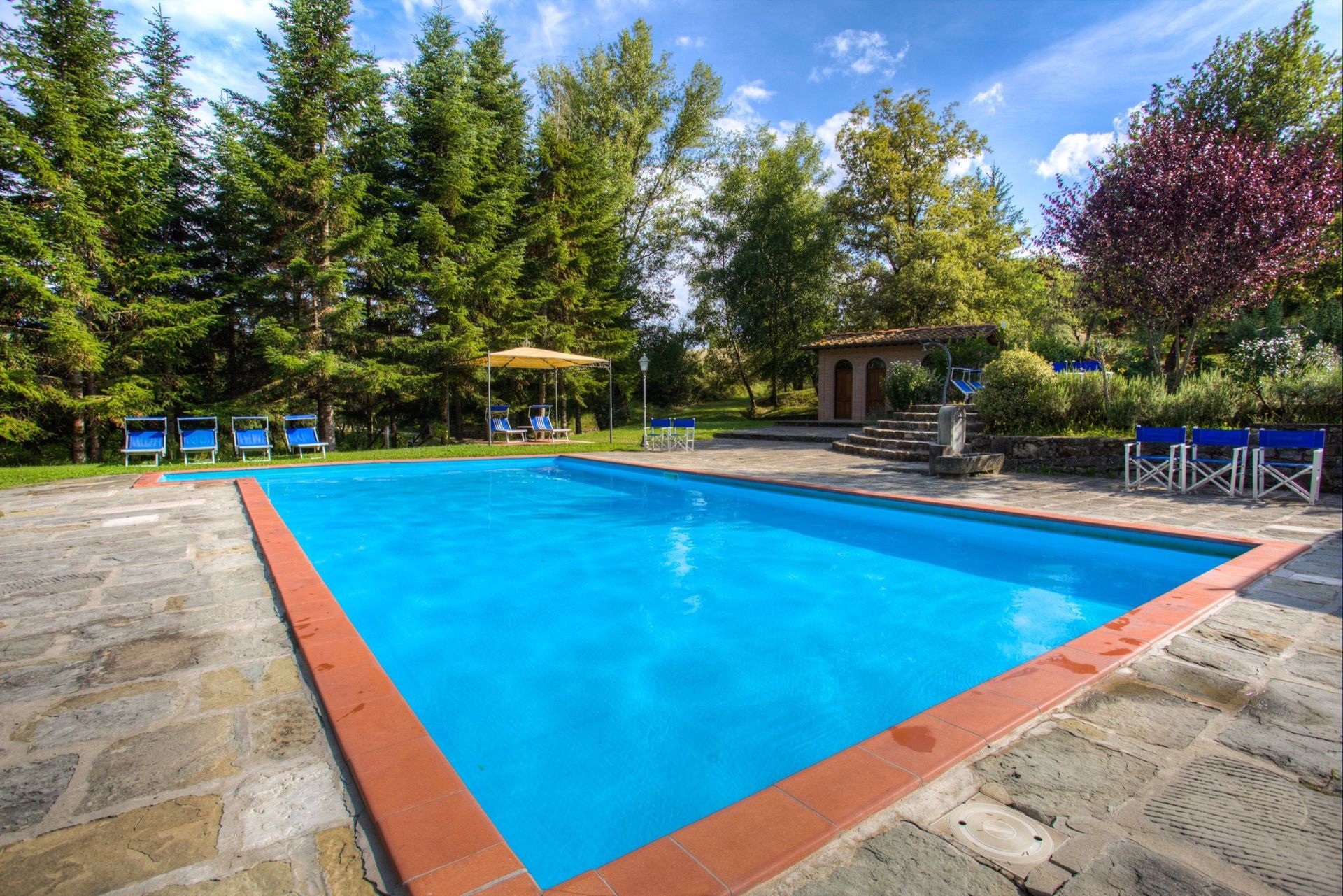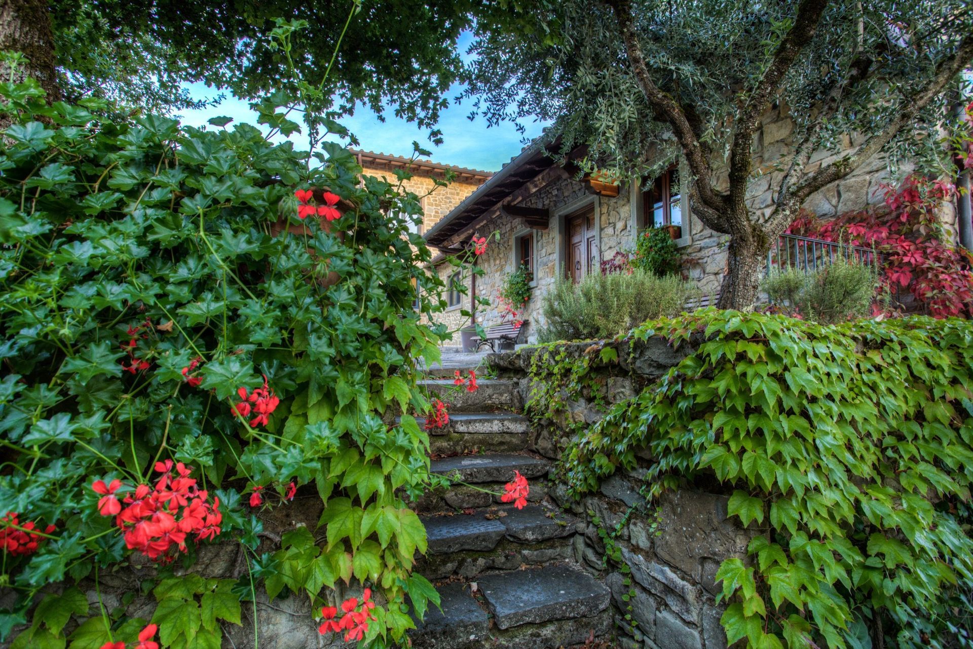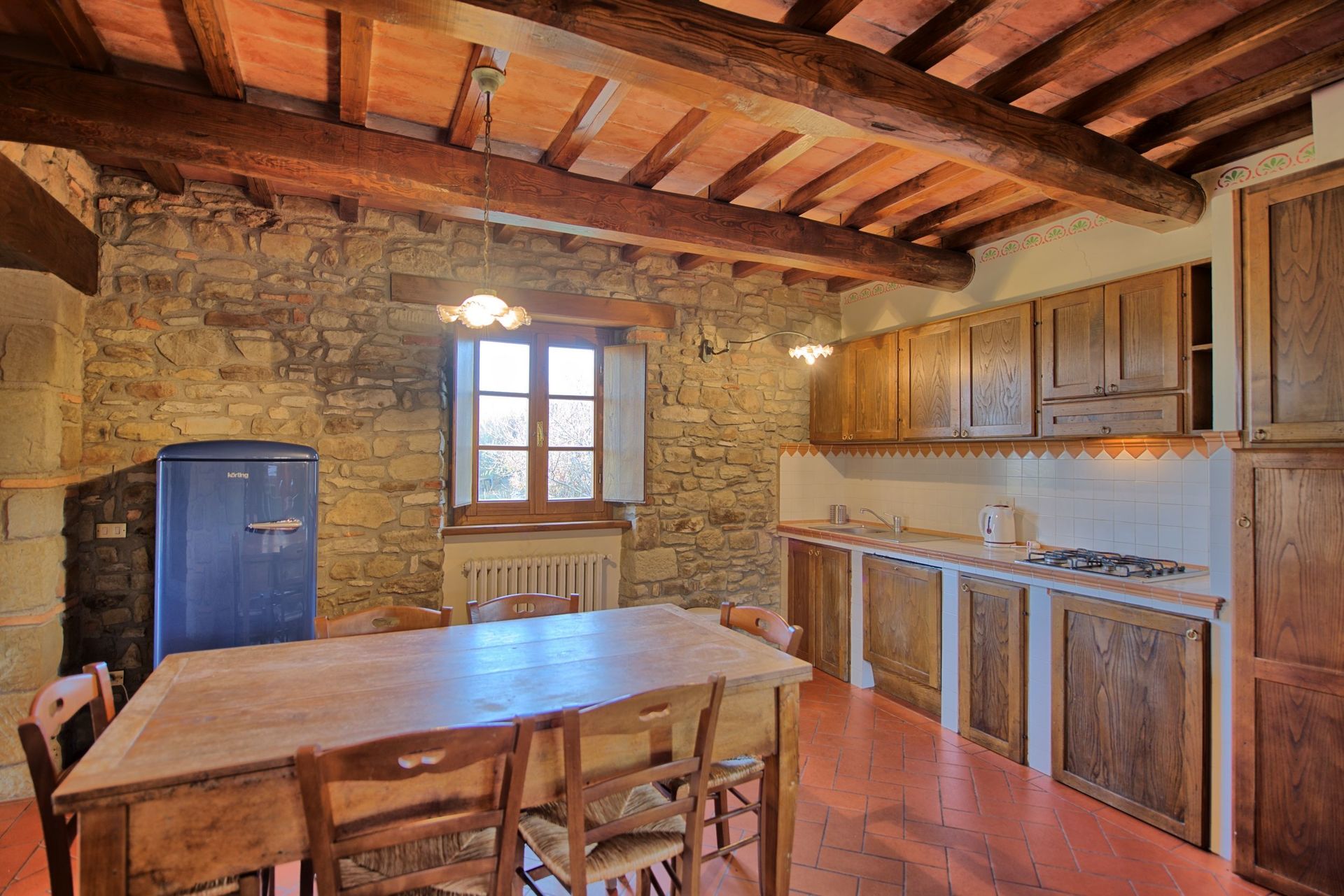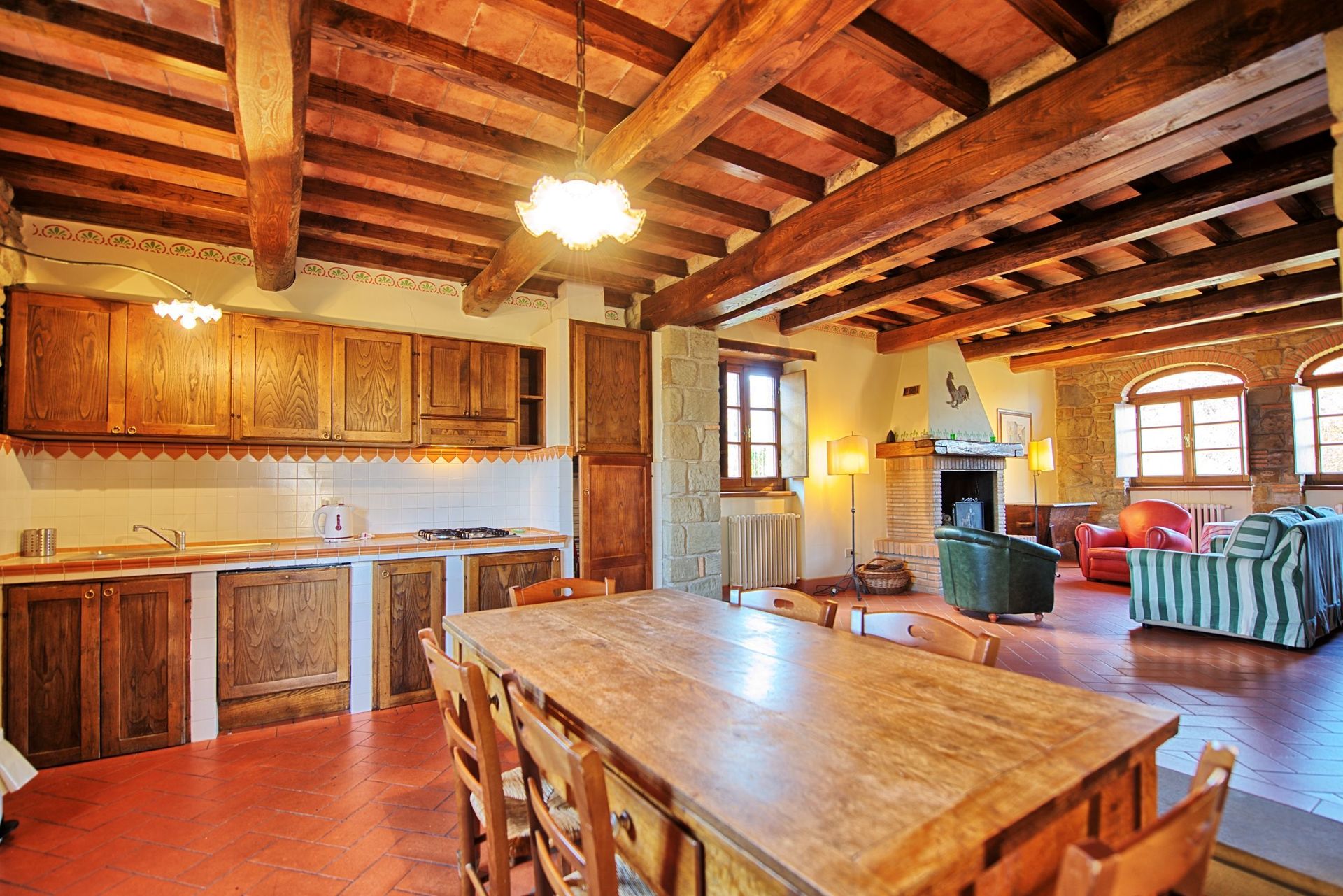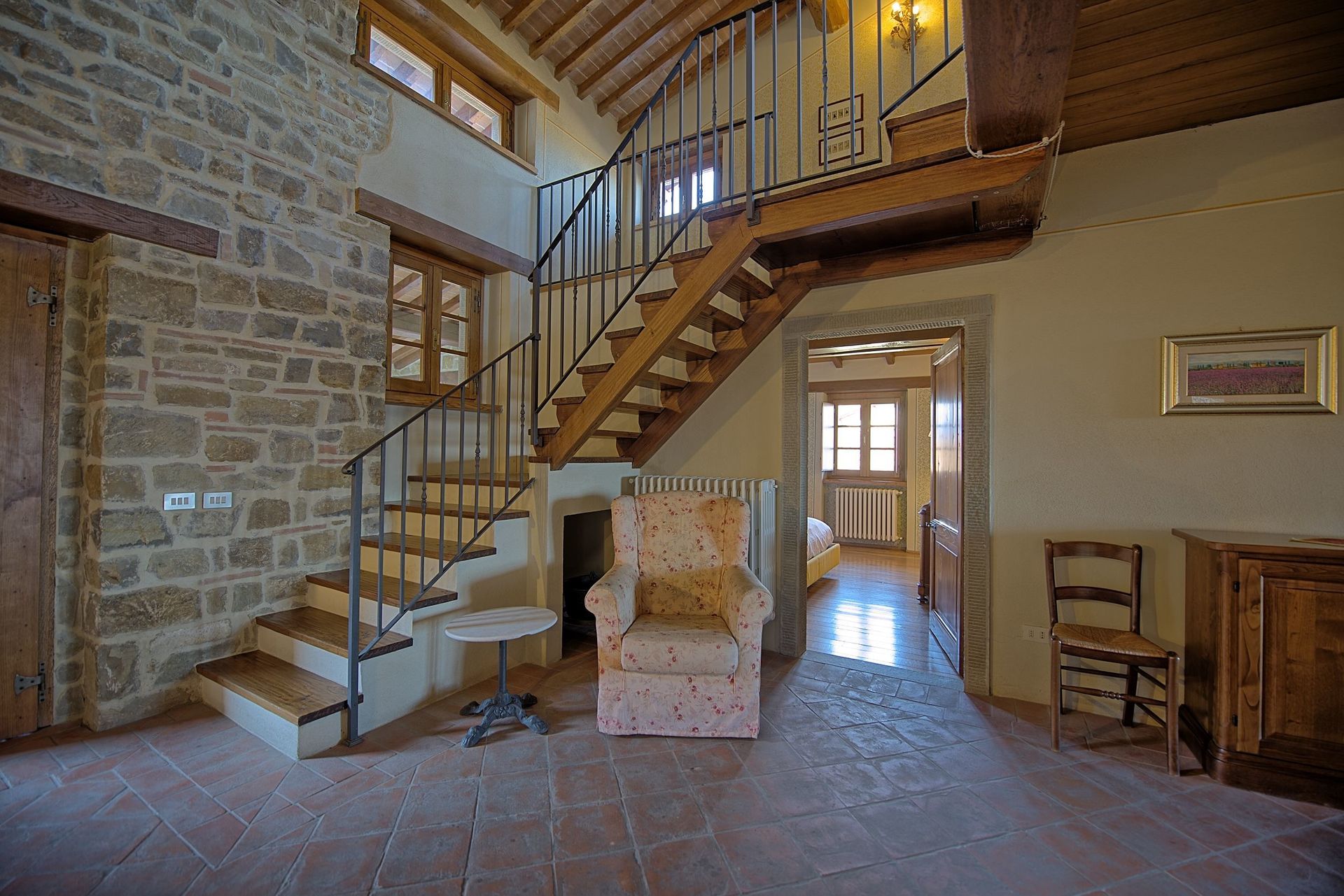 Distances: Poppi (with shops of any kind and regular trains to Arezzo) 4,5 km away, Arezzo 40 km away, Florence 60 km away, Cortona 70 km away, Siena 110 km away.