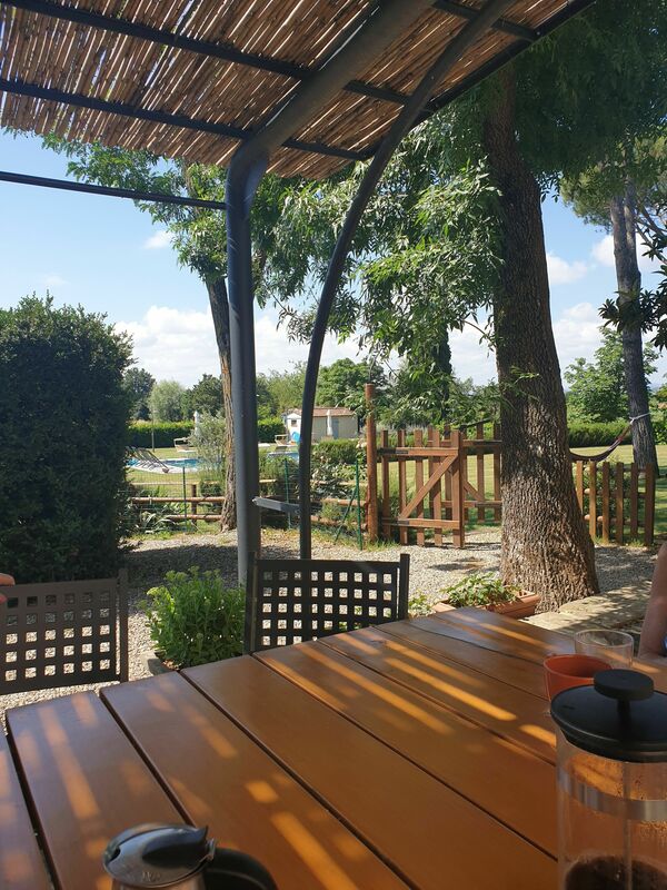 A beautiful house in lovely grounds with a well maintained and perfect sized pool.